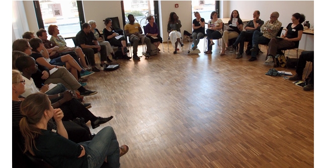- Podiumsdiskussion mit Millicent Adjei (Arca - Afrikanisches Bildungszentrum), Joshua Kwesi Aikins (Initiative Schwarze Menschen in Deutschland), Christa Goetsch (Bündnis 90/Die Grünen), Gabi Dobusch (SPD) und Hamado Dipama (AK Panafrikanismus München),